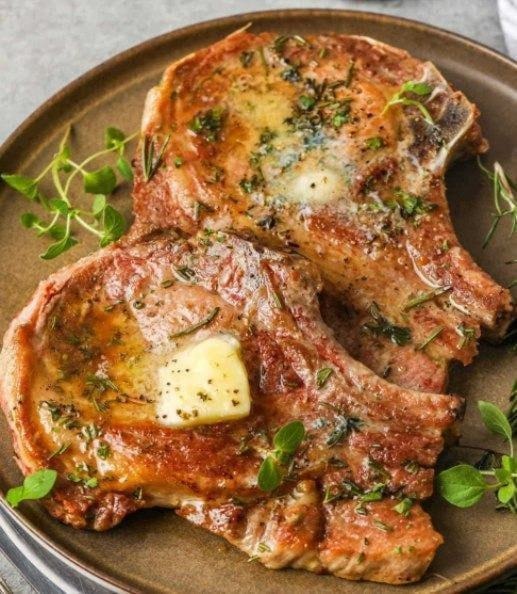 🥩 ¿Buscas una receta que combine sabor, simplicidad y elegancia en un solo plato? Las chuletas de cerdo en mantequilla son justo lo que necesitas. Con una textura jugosa por dentro y una capa dorada y fragante por fuera, estas chuletas se transforman en un manjar cuando se cocinan con mantequilla, ajo y hierbas frescas. Es el tipo de receta que se siente sofisticada pero que puedes tener lista en menos de 30 minutos.
