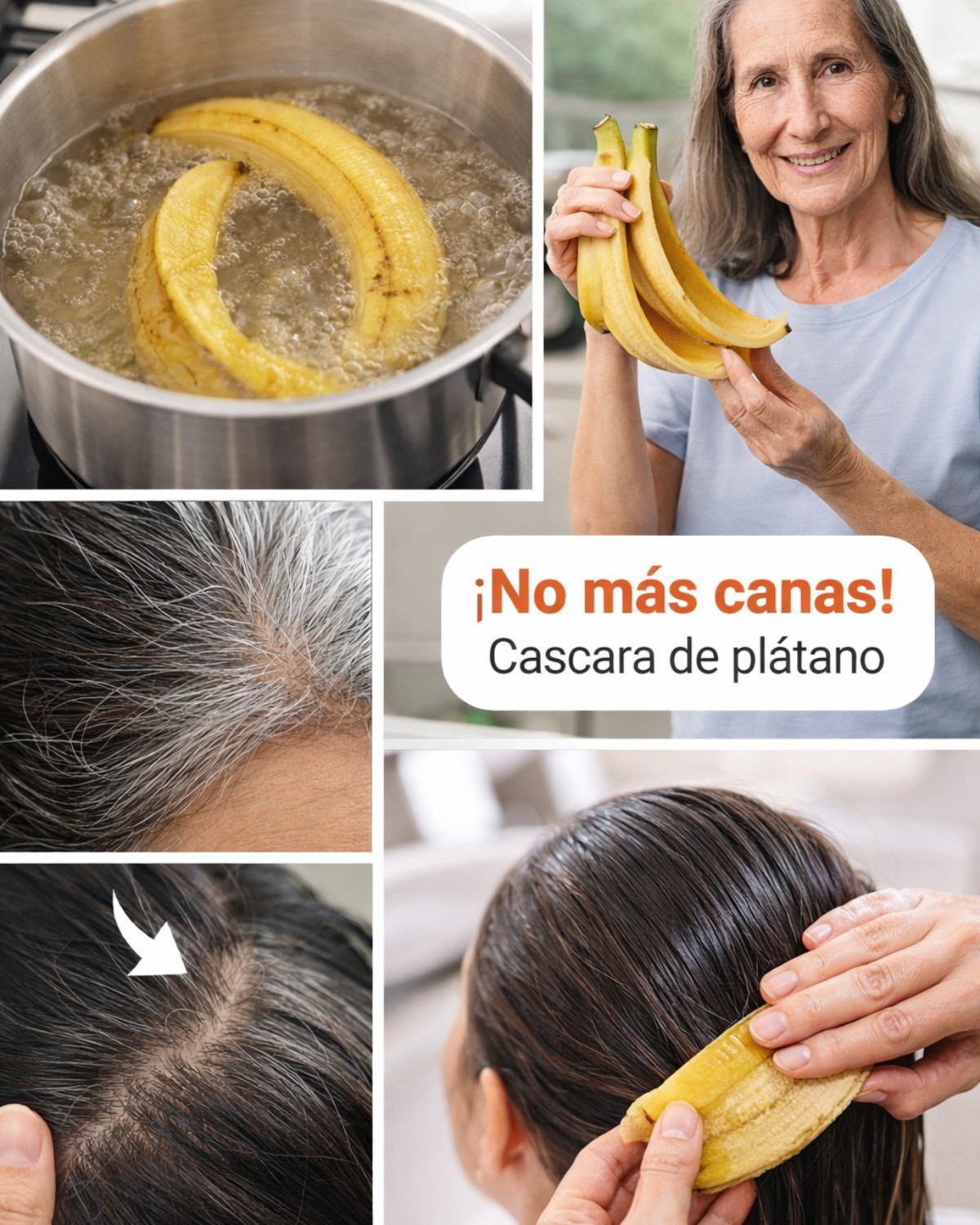 De canas a cabello negro de forma natural en solo 3 minutos y haz crecer el cabello largo rápidamente con cáscara de plátano